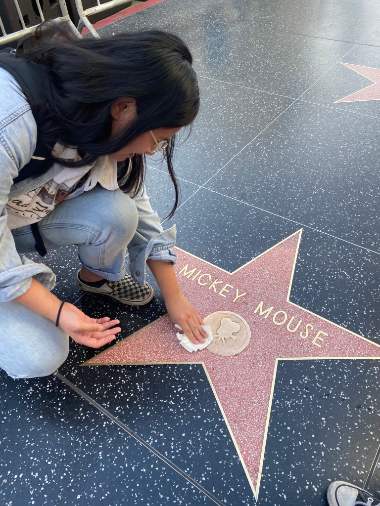 A: It definitely felt different from doing chores at home. To me, this felt like a me paying respects to a significant figure in my life. At home, I am told to do these chores, I don’t do the chores with my free will. Going out of my way to ride a train all the way to Hollywood Blvd. to clean Mr. Mouse’s star was something I wanted to do. I went the extra miles to do this act of art because I wanted to.